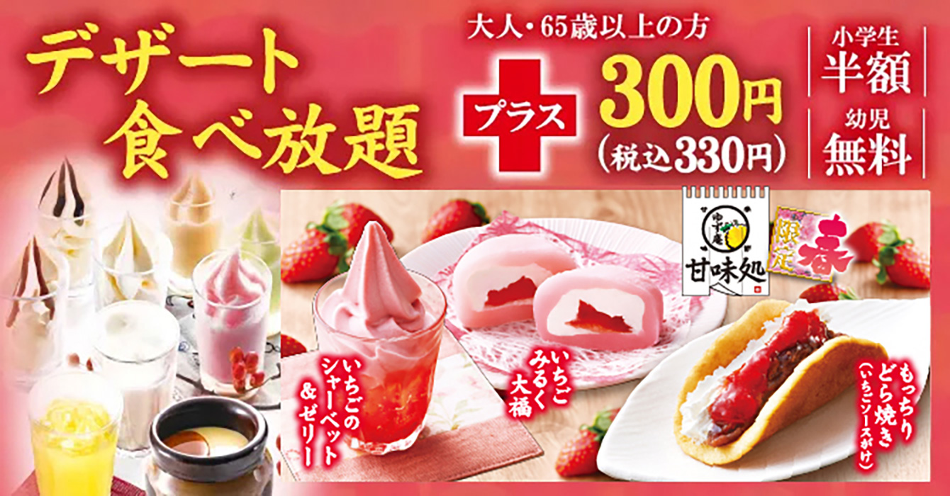 ※食べ放題の内容はお手軽コースと同様です。15時までは、お手軽コースをランチ食べ放題コースとして2,580円(税込2,838円)で販売いたします