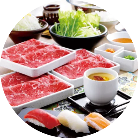 御膳や食べ放題メニューなど、多彩なお料理を一度にお楽しみいただけます。