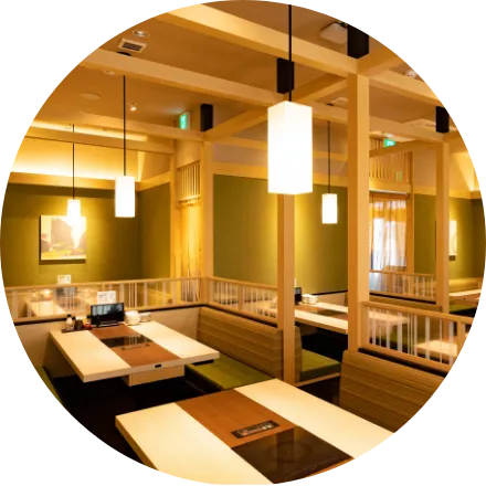 和の趣を感じる上品な店内と、広々ゆったりとしたお席でごゆっくりお寛ぎください。