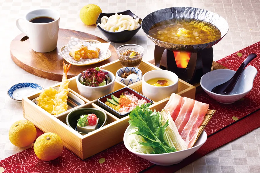 『黒毛牛しゃぶしゃぶ(交雑種)』や『季節の上寿司』、そして『天ぷら』から『茶碗蒸し』まで、贅沢な和の味わいを一度にお楽しみいただける御膳です。